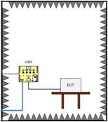 | このような 試験が可能です (用途) | 【EMI測定】 EMIテストレシーバおよびスペクトラムアナライザの組合せにより,9kHz~40GHz帯域において放射ノイズ測定(EMI測定)が可能です(アンテナ,LISN等の一部既存機器を利用)。 アンテナの移動高さが2.5m、床面が電波吸収体である点が異なりますが、3m法電波暗室と同様に機器からの放射ノイズ、および雑音端子電圧の測定や対策が可能です。 【シールド材評価】 アンテナから離れた場所(遠方界)でのシールド材の電磁遮蔽率の測定が可能です。 3m法電波暗室と小型電波暗室間の貫通窓に設定されたシールド材の電磁遮蔽率 (80dB程度)を測定します。試料は30cm~60cmの矩形で500MHz~13.5GHzで測定可能です。 |